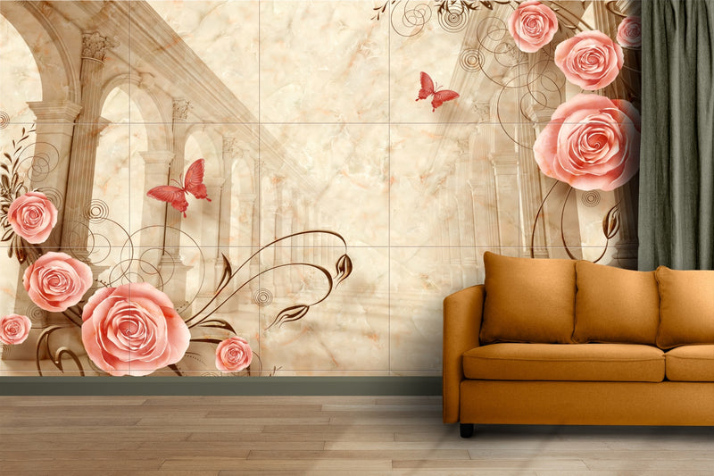 Marble Palace Roses & Butterflies Wallpaper
