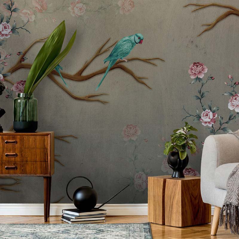 Serene Parrots & Blossom Wallpaper