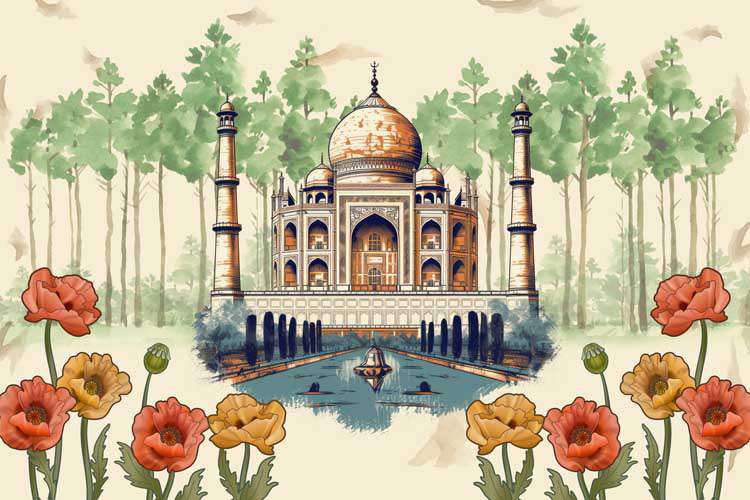 Taj Mahal Serenity Poppies & Pines