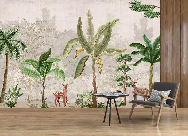Tropical Eden Banana Trees & Deer Wallpaper