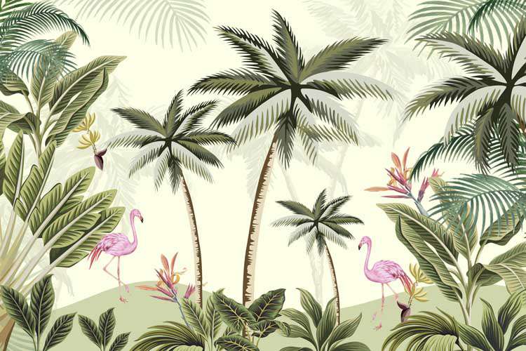 Tropical Paradise Flamingos & Palms