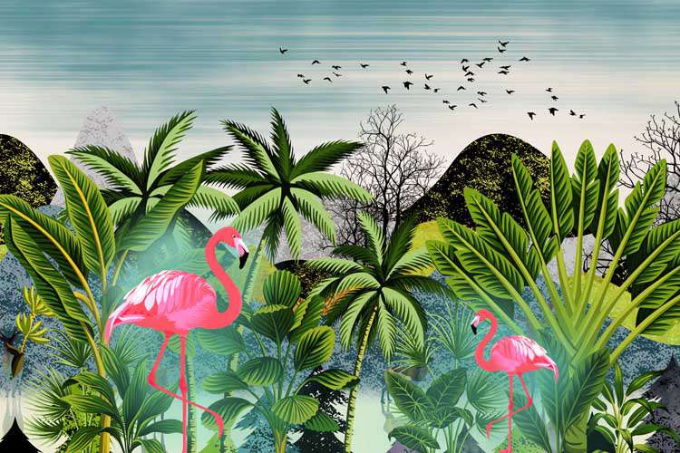 Tropical Paradise Flamingos Wallpaper