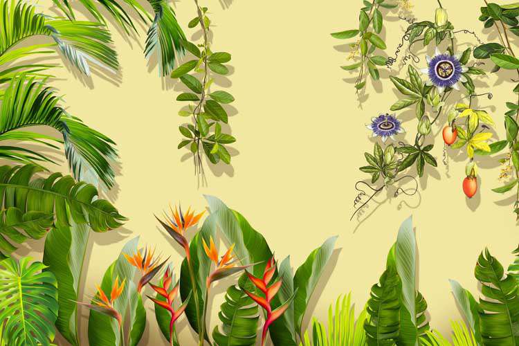 Tropical Paradise Lush Leaves & Exotic Blooms