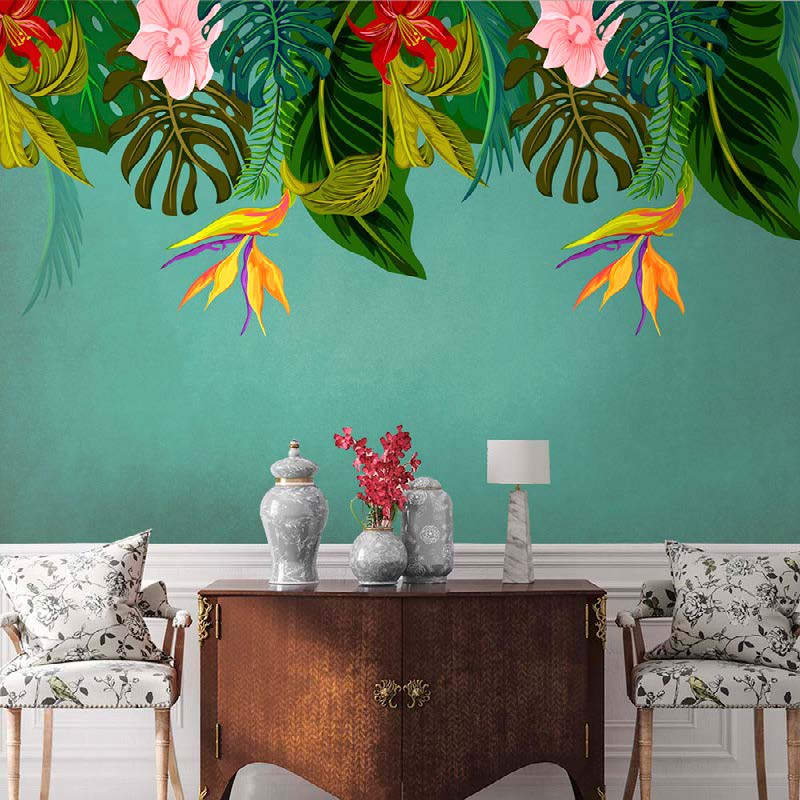Tropical Paradise Teal Wallpaper Mural